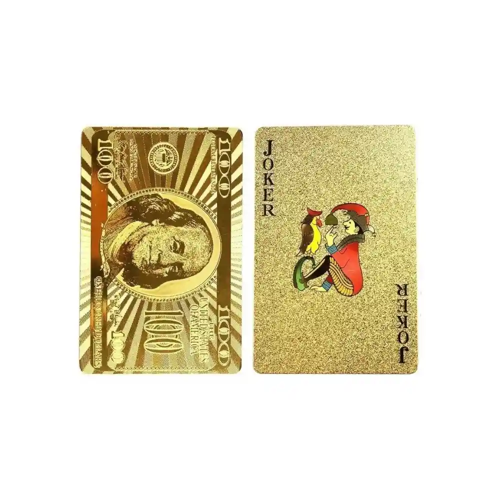 Alta calidad y super flexibles, repujadas en su parte posterior con la imagen del billete de 100 dólares. Este juego de cartas es ampliamente apreciado por jugadores profesionales por su calidad y fácil manejo, gracias a su composición en base PVC e impresión en láser que asegura durabilidad y resistencia al desgaste.