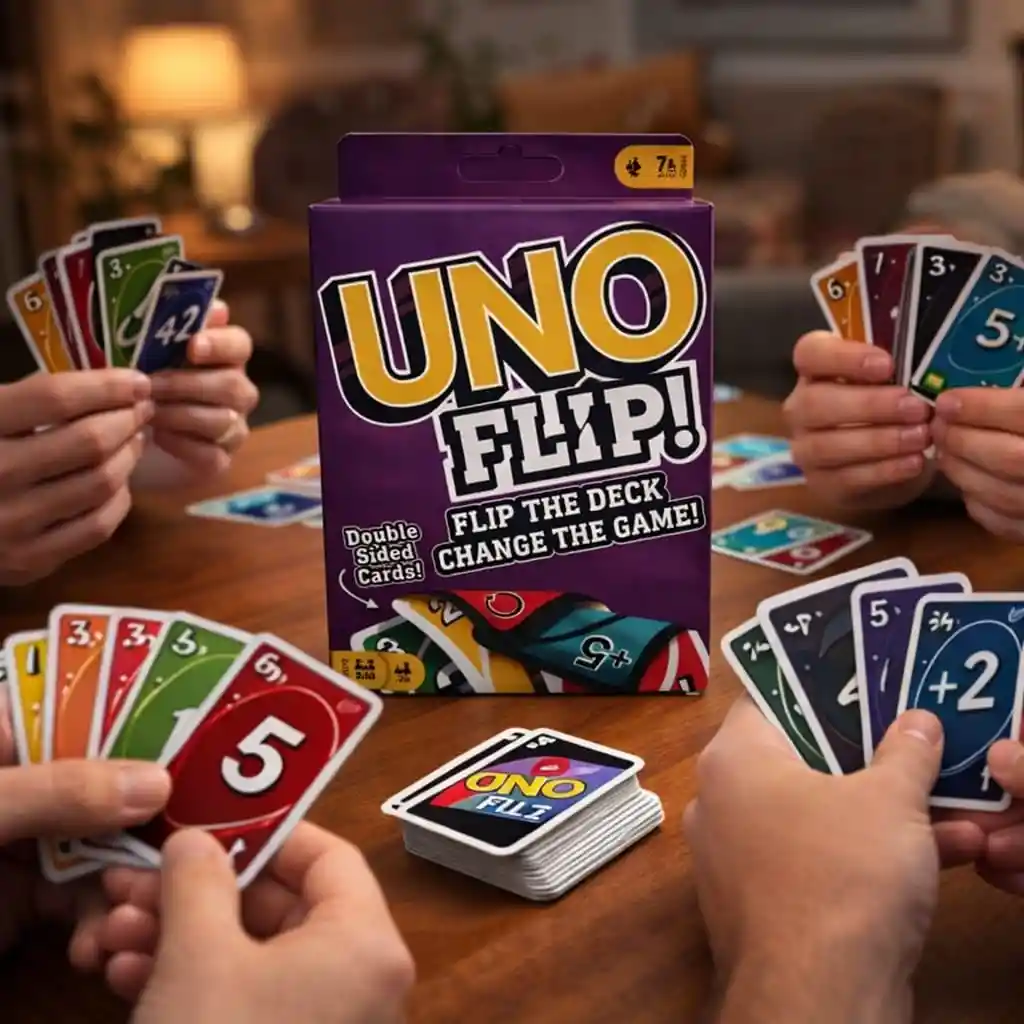 Disfruta momentos de diversión con este juego de cartas genérico tipo Uno Flip, perfecto para compartir con familia y amigos. Su dinámica es sencilla y entretenida, ideal para reuniones, fiestas o tardes de juego. Las cartas cuentan con doble cara, lo que añade una forma diferente y emocionante de jugar. Solo debes combinar colores y números, mientras utilizas cartas especiales que pueden cambiar el rumbo de la partida. Es un juego ideal para niños, jóvenes y adultos, ayudando a crear momentos divertidos en grupo. Características * Juego de cartas genérico tipo Uno Flip * Cartas doble cara para mayor diversión * Fácil de aprender y jugar * Ideal para familias y reuniones * Perfecto para niños y adultos Contenido * 1 juego de cartas genérico tipo Uno Flip Perfecto para reuniones familiares, viajes o tardes de juegos con amigos.