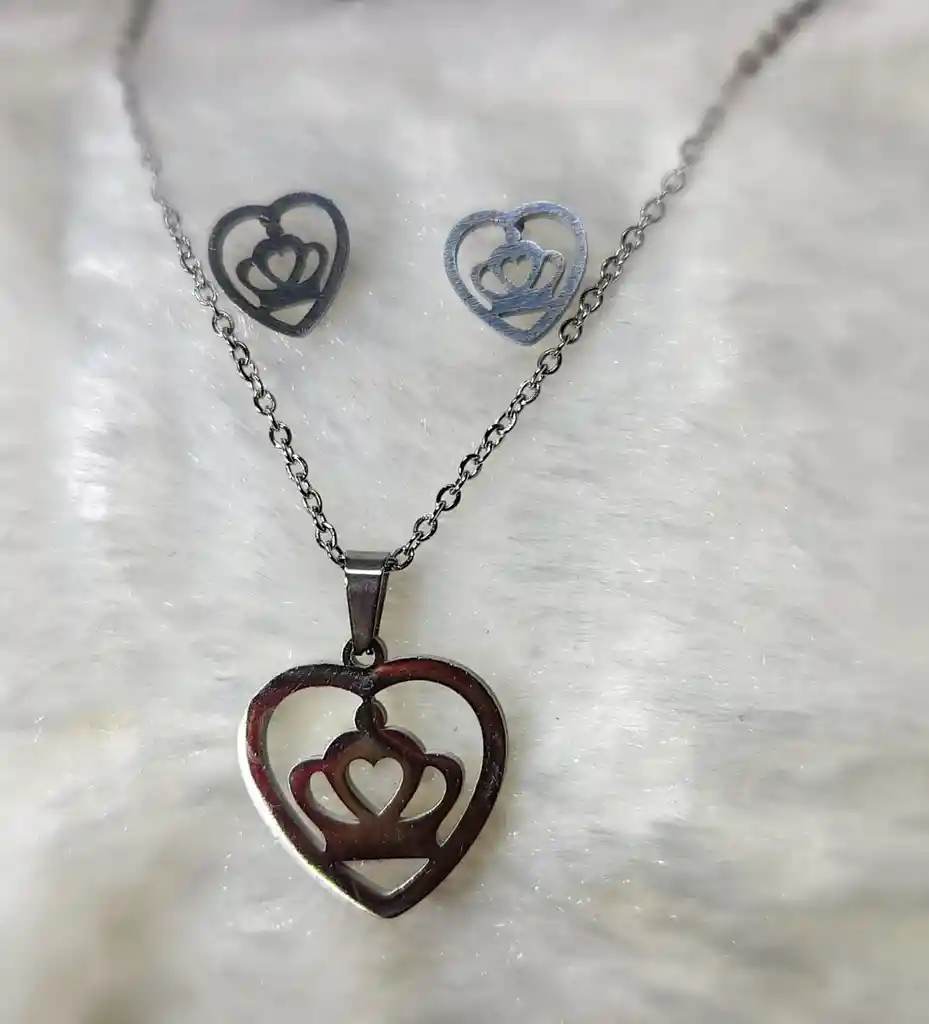JUEGO DE COLLAR Y ARETES, EN ACERO INOXIDABLE - FORMA DE CORONA