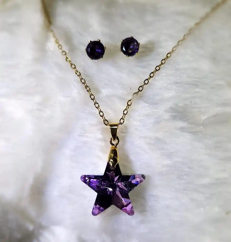 JUEGO DE COLLAR Y ARETES, EN ACERO INOXIDABLE - DIJE DE ESTRELLA