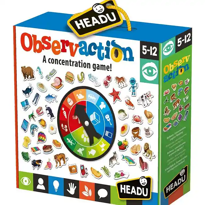 Amplíe el vocabulario, acelere la velocidad de observación y extienda el pensamiento lógico en este emocionante juego de 'Observación. Un juego de hacer girar la rueda que requiere que los jugadores identifiquen y clasifiquen la mayor cantidad de piezas de objetos lo más rápido posible, una vez que la mano giratoria cae en una categoría (es decir, alimentos, objetos o animales). Desarrolla habilidades de observación, asociación y clasificación, Razonamiento científico y lógico, Concentración y velocidad, Conocimiento geográfico, Confianza y autoestima. Edad recomendada a partir de 5 años.Medidad 26 x 29 x 7 Cms.