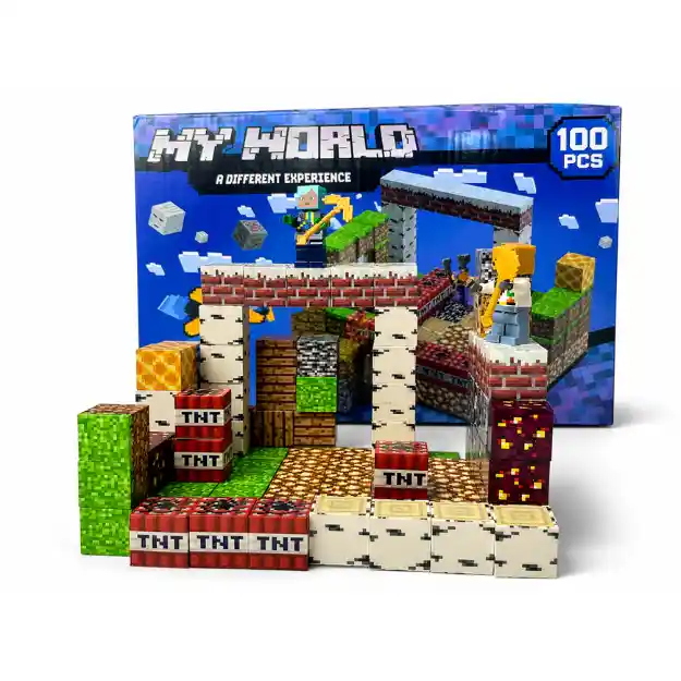 Este set de construcción tipo bloques ensamblables incluye 100 piezas, ideal para crear estructuras tridimensionales inspiradas en mundos pixelados. Permite a los niños desarrollar su creatividad construyendo diferentes escenarios y figuras de forma libre o guiada. Incluye bloques temáticos como tierra, madera, minerales, TNT y lava, además de 2 figuras tipo personaje que hacen el juego más dinámico e interactivo. Es perfecto para recrear ambientes y vivir experiencias de juego más completas. Fabricado en plástico ABS de alta resistencia, garantiza durabilidad y uso prolongado, con acabados gráficos que mantienen los detalles visuales incluso con el uso constante. Su sistema de ensamblaje a presión permite armar y desarmar fácilmente sin necesidad de herramientas, facilitando la creación de múltiples configuraciones y fomentando el aprendizaje práctico. Es una excelente opción para estimular habilidades como la coordinación, el pensamiento lógico y la creatividad, convirtiéndolo en un juguete educativo y entretenido para niños desde los 3 años. 🔹 Características 100 piezas de construcción Incluye 2 figuras tipo personaje Bloques temáticos tipo videojuego Incluye bloques especiales como TNT y lava Material en ABS resistente Sistema de ensamblaje a presión Compatible con bloques similares Diseño modular reutilizable Variedad de colores y texturas Ideal para construcción 3D Edad recomendada desde 3 años Ligero, práctico y duradero