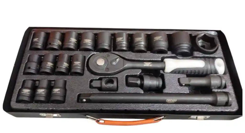 Marca: Chicago Material de fabricacion: Chrome Vanadium Juego de copas ideales para pistolas neumáticas, ofrecen gran resistencia para trabajos pesados. Incluye 22 piezas: 17 Copas de impacto hexagonales cuadrante de 1/2 10MM - 11MM - 12MM - 13MM - 14MM - 15MM - 16MM - 17mm - 18MM - 19mm - 20 - 21mm - 22mm - 24mm - 27mm - 30mm - 32mm 1* Extensor 1/2 250mm 1* Extensor 1/2 75mm 1* Junta universal 1* Adaptador de 1/2 1* Ratchet de 1/2 Caja de transporte plástica 6 MESES DE GARANTIA.