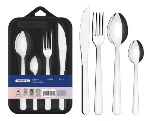 America Store te trae Juego De Cubiertos Tramontina Malibu Acero Inoxidable 16 Pz ¿Siempre desea tener la mesa puesta para sus comidas diarias? Entonces necesita conocer el juego de cubiertos Tramontina Malibu en acero inoxidable 16 piezas. Compuesto por cubiertos que harán su mesa mucho más encantadora, asegura también alta resistencia y durabilidad. Está producido en acero inoxidable y cuenta con cuchillos de alto poder de corte, debido al tratamiento térmico, y tenedores y cucharas resistentes a impactos, porque poseen estampado y espesor especiales. ¡Un juego que es apto para el lavavajillas y facilitará sus tareas en la cocina!