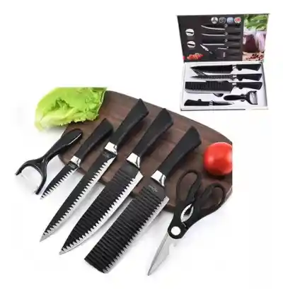 Este juego de cuchillos de cocina presenta un llamativo diseño en relieve y hojas de acero inoxidable de alta calidad que resisten las manchas y la corrosión. Los cubiertos proporcionan cortes nítidos y precisos desde el primer uso y están diseñados para durar. Dale un nuevo aspecto a las encimeras de tu cocina con este elegante y elegante juego de cuchillos. Alta dureza y sólido, apto para rebanar, cortar en cubitos, picar, picar, etc. Antiadherente y antioxidante: la superficie adopta tecnología de recubrimiento de calidad alimentaria para hacer que el cuchillo del chef sea antiadherente, antioxidante y antioxidante. PRODUCTO SALUDABLE: Estos cuchillos se pueden usar para cortar y tallar frutas, verduras, hierbas, pasteles, pan, pollo, carne, pescado, aves y más. Este cuchillo no se oxida fácilmente. El material negro metálico del producto crea una apariencia rica en su comedor. No poroso, antiadherente, que no absorbe olores, antibacteriano, sin fugas químicas, sin óxido. Juego de cuchillos de cocina profesionales de 6 piezas. Este cuchillo de alta gama está fabricado a mano en nuestra fábrica. Funciones completas, buen equilibrio, apto para práctica y colección. Este es un cuchillo multiusos que debes tener. Éste es a quien desea comunicarse. Si tienes un cuchillo, eso es todo. La herramienta de corte definitiva para cortar en cubitos y rebanar frutas, verduras, carnes y más todos los días. ======================================== De color negro Material: acero inoxidable + revestimiento antiadherente Espesor: 1,2 mm Peso: alrededor de 880 g. ======================================== Lista de embalaje: 1 × cuchillo rebanador 1 × cuchillo multiusos 1 × cuchillo de carnicero 1 × cuchillo de fruta 1 × tijeras de cocina 1 × afeitadora de melón 1 × caja de embalaje