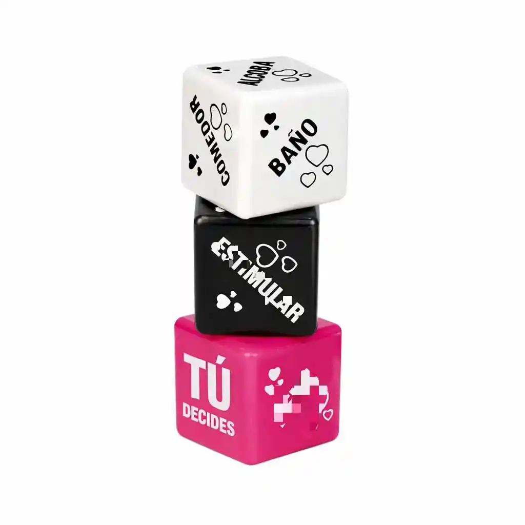 Modo de Uso: 1. Elijan quien sera el primero en lanzar los dados. 2. Un dado te indicará la accion a realizar, el otro indicara la parte del cuerpo y el otro un lugar de tu casa. 3. ¡Ahora hazle a tu pareja lo que los dados te dicen! Contenido: 3 unidades de Dados. Confidencialidad: Tus pedidos se envían en una caja o sobre totalmente sellado opaco sin ningún tipo de marcas externas. Para nosotros es muy importante tu privacidad.