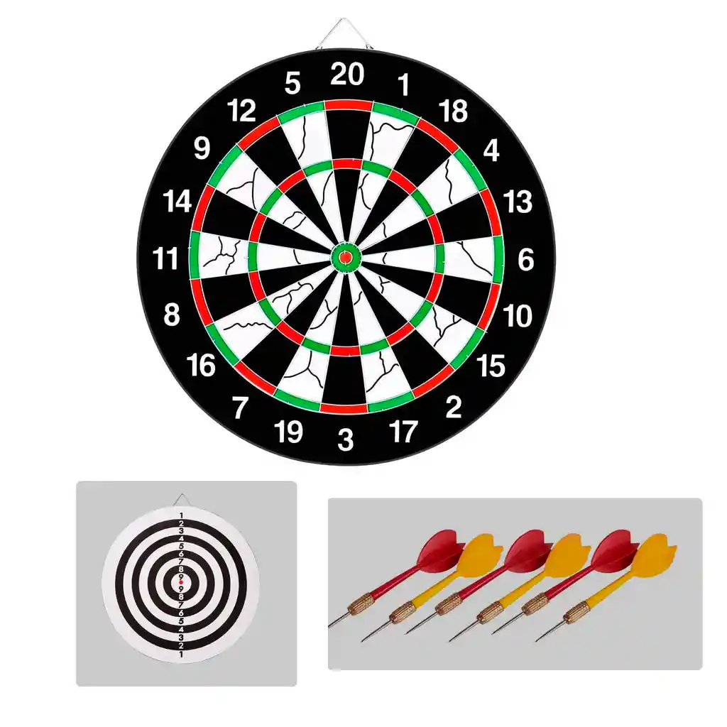 "El juego de dardos se practica individualmente o por equipo, y consiste en que cada uno de los jugadores lanzan los dardos alternativamente a un tablero o diana hasta completar una puntuación determinada. Ahora te traemos este divertido juego de dardos. Incluye: 1 Tablero de dardos de 32 cm 3 dardos con punta Magnética"