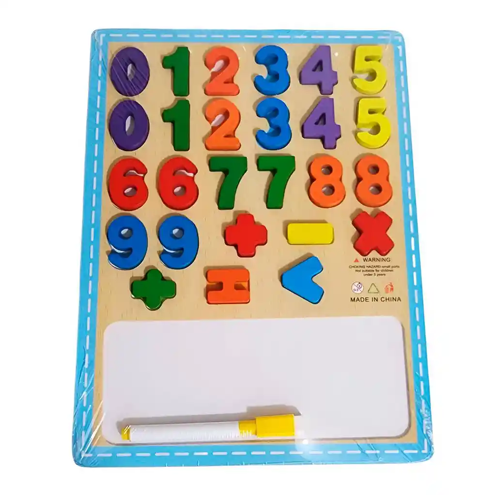 Rompecabezas de madera con números y símbolos matemáticos en relieve, ideal para que los niños aprendan de forma divertida a reconocer cifras, practicar operaciones básicas y desarrollar habilidades lógicas; incluye un marcador con borrador y espacio para escribir en la parte inferior, estimulando la concentración, la motricidad fina y el aprendizaje temprano de las matemáticas de manera práctica y entretenida. Ficha Técnica: Materiales : Madera Dimensiones: 30 cm x 22 cm x 1 cm Edad recomendada : + 3 años en adelante Material suave, cómodo, seguro, no tóxico Certificado de conformidad: SL-CS-210044 Referencia: CNS-038 Términos de garantía: Para defectos de fábrica o retractos: Por favor revise el producto apenas lo reciba y antes de usarlo. No aplican ley de retracto o defectos de fábrica luego de usar el producto. Se manejan máximo 5 días para reportar defectos de fábrica (por ejemplo, producto funciona mal, piezas faltantes, rotas, etc). Para hacer efectiva la devolución el producto debe devolverse con el empaque original, el cual debe estar en buen estado, incluir todos los documentos y las partes completas y sin daños.