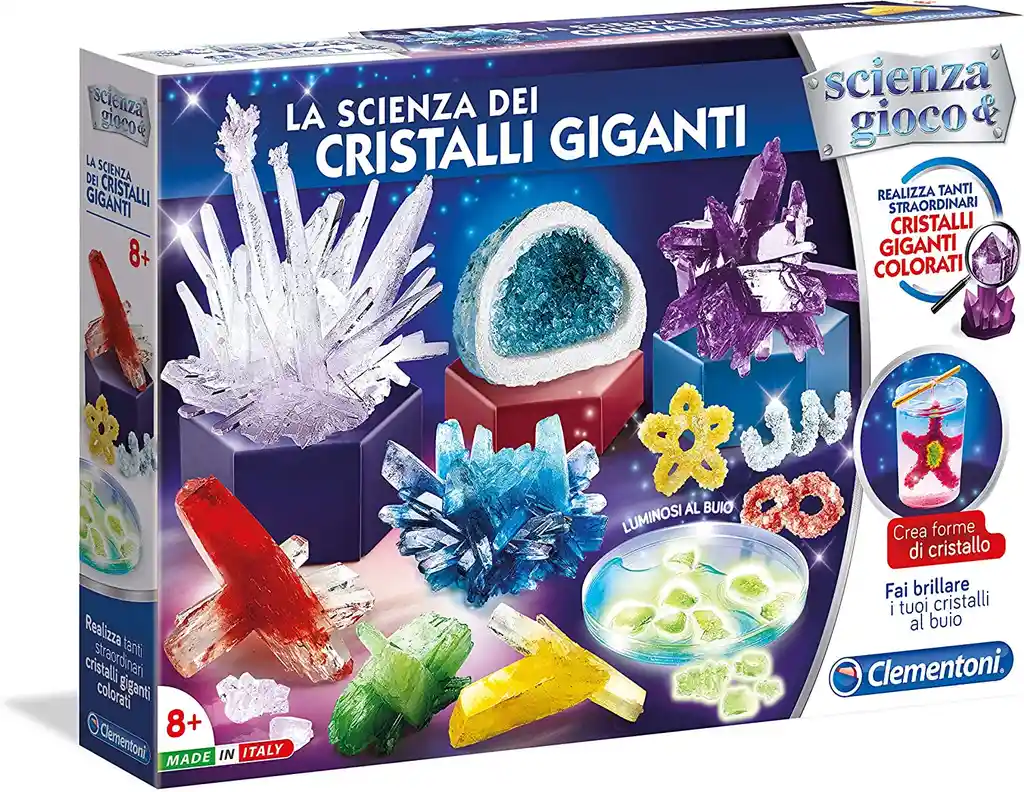 Empaque de regalo sin costo adicional, escríbenos al finalizar la compra. 8 años + Este juego científico te permitirá aprender los principios de la química y descubrir cómo se forman los cristales. Con nuestro completo kit, los niños podrán crear cristales de diferentes formas y colores, explorando de manera segura las reacciones químicas de las sales, gracias al manual detallado y las herramientas incluidas. Fabricado en Italia, nuestro kit incluye una amplia variedad de herramientas y materiales para crear grandes cristales de diferentes formas y colores, y descubrir todos los secretos de los minerales. Con los coloridos tubos incluidos en el juego, podrás crear increíbles formas decoradas con cristales, o realizar creaciones mágicas en papel absorbente blanco. Además, el kit incluye un molde para simular una geoda natural y diferentes tipos de rocas para estudiar el crecimiento de los cristales. La geoda es una roca hueca con el interior revestido de cristales, y los niños podrán utilizar el yeso y el molde para crear su propia geoda. Una vez que el yeso se haya secado, podrán hacer crecer los cristales en el interior de la cavidad. Para hacerla aún más realista y hermosa, podrán pintarla tanto por fuera como por dentro con las temperas incluidas.