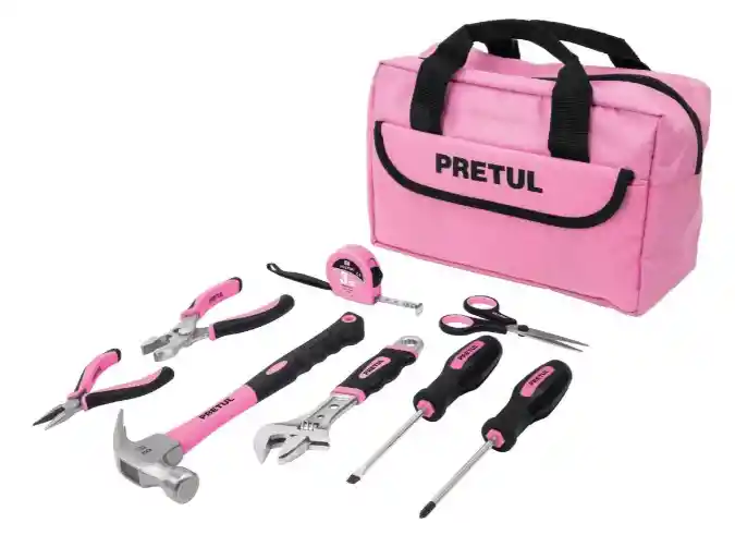 Descripción CARACTERÍSTICAS Flexómetro con cuerpo fabricado en ABS de alto impacto color rosa, cinta cubierta con laca para evitar rayaduras y desgaste de la impresión, cuenta con clip metálico para fijarlo al cinturón y correa de PVC para muñeca. Martillo, llave ajustable, pinzas y desarmadores fabricados de acero al carbono y tijeras de acero inoxidable. Estuche práctico fabricado de poliéster, color rosa. ESPECIFICACIONES Contenido 8 piezas Longitud del metro 3 m (10ft) Apertura del perico 24.05 mm Tipo de uña del martillo Curva Cabeza del martillo 24 mm Longitud de las tijeras 138 mm Longitud de pinzas 123 mm Medidas del estuche 32 cm X 19,5 cm X 14 cm Inner 1 Master 8