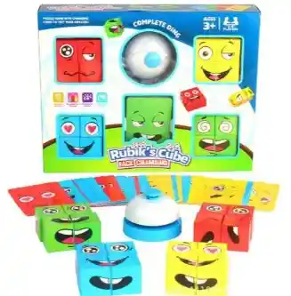 Descripción General¡Pon a prueba tu velocidad mental y tu agilidad con este divertido Juego de Mesa de Caras Cambiantes! Inspirado en la dinámica del cubo Rubik's, los jugadores deben replicar rápidamente la expresión de una carta objetivo utilizando sus propios cubos de colores.Este es un juego de ingenio, concentración y destreza visual que garantiza risas y sana competencia. Es ideal para niños mayores de 3 años y adultos que buscan un juego familiar dinámico y rápido.Características PrincipalesDinámica de Velocidad: El objetivo es replicar la expresión facial mostrada en la carta de reto lo más rápido posible.Cubos de Expresiones: Incluye cubos de colores (rojo, azul, amarillo y verde) que tienen mitades de caras (ojos y bocas) en cada lado.Múltiples Caras: Las piezas permiten formar muchas combinaciones de emociones y expresiones (felicidad, sorpresa, amor, enojo).Campana de Juego: El set incluye una campana (DING) que el primer jugador en completar correctamente la expresión debe tocar para ganar la ronda.Cartas de Desafío: Viene con un mazo de cartas con las expresiones objetivo a replicar.Marca Sugerida: El producto sugiere ser una variación de un "Rubik's Cube".Especificaciones TécnicasCaracterísticaDetalleMarca / LíneaRubik's Cube Face ChangingTipo de ProductoJuego de Mesa, Rompecabezas de VelocidadComponentesCubos de Expresiones de Colores, Cartas de Reto, Campana (Ding)Edad Recomendada3 años en adelante (3+)JugadoresGeneralmente 1 a 4 jugadoresHabilidades DesarrolladasConcentración, Reconocimiento de Patrones y Velocidad Visual.