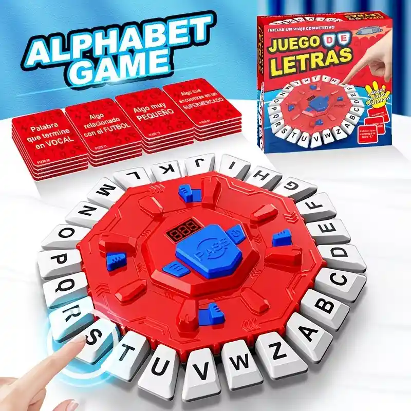 Pon a prueba tu mente con este juego de mesa dinámico donde la rapidez y la creatividad lo son todo. Gira, presiona y responde antes que los demás usando las letras del tablero para cumplir cada reto. Cada partida es diferente gracias a sus cartas con desafíos variados, haciendo que la diversión nunca se repita. Perfecto para jugar con amigos o en familia y convertir cualquier momento en pura competencia. Incluye contenido emocionante: 35 tarjetas temáticas Más de 70 retos diferentes Dinámicas como: palabras por categoría, objetos, características y más Lo que lo hace único: Juego rápido y súper entretenido Desarrolla agilidad mental y vocabulario Tablero interactivo con botones de letras Ideal para reuniones, fiestas y retos entre amigos