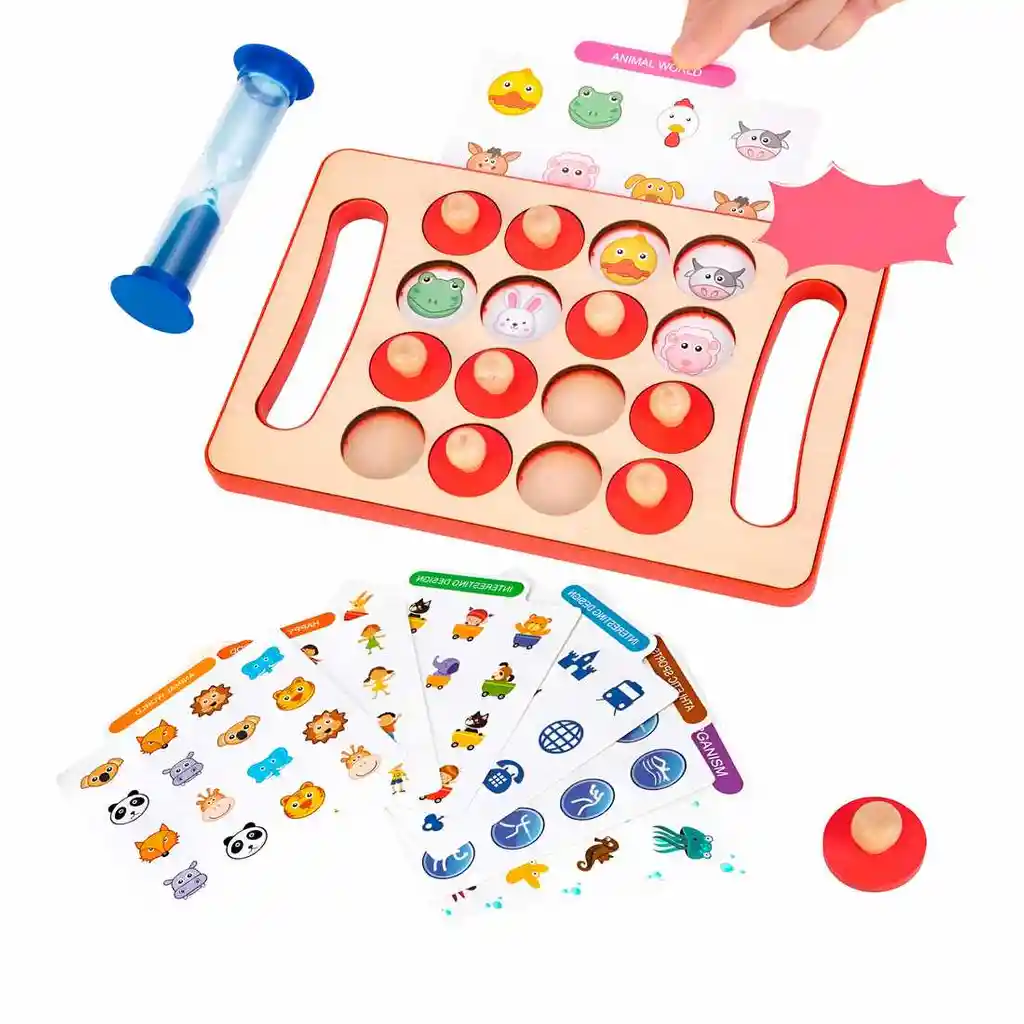 Ejercita la mente de tu pequeño de la manera más divertida con nuestro encantador Juego de Memoria de Madera. Este clásico reinventado invita a los jugadores a levantar las clavijas para encontrar los pares de imágenes ocultas, poniendo a prueba su concentración y agudeza visual. Gracias a sus múltiples tarjetas temáticas intercambiables —con animales, criaturas marinas, deportes y más— la diversión y el desafío nunca se terminan, ofreciendo una alta rejugabilidad. Es una herramienta fantástica y sin pantallas para potenciar la memoria, fomentar la paciencia y enseñar el valioso concepto de tomar turnos. Fabricado en madera de alta calidad con un diseño seguro y atractivo, y con un reloj de arena para añadir un reto de velocidad, es el regalo perfecto para las noches de juegos en familia, garantizando horas de entretenimiento que fortalecen lazos y agudizan la mente. Ficha Técnica: Dimensiones del empaque : 25 cm x 16 cm x 5 cm Material: Madera Edad Apta : + 3 Años Certificado de conformidad: SL-CS-210043 Referencia: DM1056 ** _Para defectos de fábrica o retractos: \_Por favor revise el producto apenas lo reciba y antes de usarlo. No aplican ley de retracto o defectos de fábrica luego de usar el producto. Se manejan máximo 5 días para reportar defectos de fábrica (por ejemplo, producto funciona mal, piezas faltantes, rotas, etc). Para hacer efectiva la devolución el producto debe devolverse con el empaque original, el cual debe estar en buen estado, incluir todos los documentos y las partes completas y sin daños.