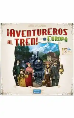 Aventureros al Tren Europa 15 Aniversario es un Juego de Mesa Familiar de Gestión de Rutas Ferroviarias. Incluye 1 Mapa de Tablero Gigante de Las Rutas de Trenes Europeas Con Ilustraciones Nuevas, 5 Cajas de Metal, Cada Una Con 45 Vagones de Vagón Esculpidos, 15 Estaciones de Tren de Colores, 5 Marcadores de Puntuación, 1 Folleto de Reglas, 110 Tarjetas de Vagón de Tren, Las 108 Tarjetas de Billetes de Destino, 1 Carta Del European Express y 1 Carta de Referencia de Grandes Ciudades. Idioma: Español - Edad: 8 + - Tiempo de Juego: 60 Min Aproximadamente - Jugadores: 2-5