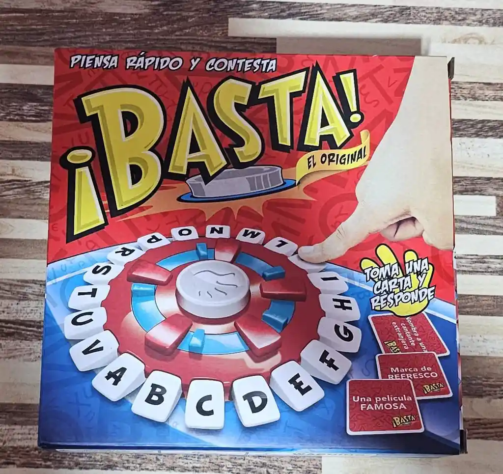 Juego de Mesa Basta Español Basta juego stop BASTA es un emocionante juego de mesa que desafía tu agilidad mental y rapidez de pensamiento. Ideal para grupos de amigos o familiares, este juego se puede disfrutar con un mínimo de 2 y un máximo de 8 jugadores, lo que lo convierte en la opción perfecta para reuniones y celebraciones. Con una edad recomendada de 14 años o más, también es accesible para jugadores a partir de 8 años, lo que permite que todos participen en la diversión. El formato físico del juego incluye tarjetas que te retan a pensar rápido y a ser creativo mientras compites por completar categorías en un tiempo limitado. La dinámica del juego fomenta la interacción y la risa, haciendo que cada partida sea única y emocionante. BASTA es una excelente manera de pasar tiempo de calidad con amigos y familiares, mientras ejercitas tu mente y disfrutas de momentos inolvidables. Contenido del paquete: 1 temporizador electrónico con letras. Tarjetas de temas interesantes Instrucciones del juego en español (requiere dos pilas AA, las pilas no están incluidas). Mejora de habilidades: Con el juego PALABRAS RÁPIDAS, no solo los niños, sino también los adultos pueden mejorar sus habilidades lingüísticas. Pensar rápido y encontrar la palabra correcta bajo presión de tiempo entrena el cerebro y agudiza la competencia lingüística. Batallas innovadoras: Sumérgete en un mundo emocionante donde el pensamiento rápido y la diversión se encuentran. Presiona la letra, elige una tarjeta de categoría y desafía al tiempo para decir la palabra correcta. La jugabilidad innovadora garantiza entretenimiento emocionante para todos los jugadores. Fácil de llevar: El juego PALABRAS RÁPIDAS es portátil y se puede llevar a cualquier parte. Las tarjetas están seguras en la rueda, por lo que puedes organizar el juego en cualquier momento y disfrutar de momentos de aprendizaje entretenidos. Perfecto para llevar de viaje o para jugar en casa. RECUERDA: La vida útil de tu producto depende exclusivamente de su uso, te recomendamos leer atentamente el manual de usuario y seguir todas las instrucciones que incluya cada artículo.