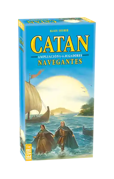 Catan Navegantes Ampliación 5-6 Jugadores Este juego requiere: Catan Básico Y Catan Navegantes Descubre la sensación de navegar en Catán con más amigos recreando sus expediciones navales históricas. Además, encontrarás 8 nuevos lugares que podrás visitar durante las expediciones. ¡Vive la historia de Catán! La campaña se compone de 8 escenarios. Contenido: 2 piezas de marco de mar, 7 hexágonos de mar, 3 hexágonos de terreno, 2 de río aurífero, 1 de desierto, 1 puerto de lana, 6 tablas de costes de construcción, 30 fichas catán, 15 barcos marrones, 15 barcos verdes 1 reglamento