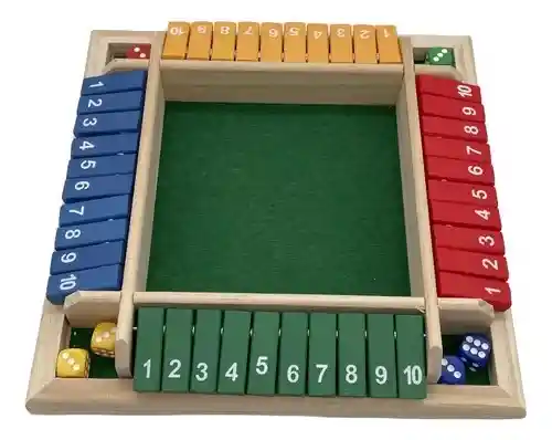 Juego De Mesa Cierra La Caja parques Descubre el juego de mesa que reunirá a tu familia y amigos en una noche de diversión y emoción! Cierra la Caja es un juego clásico de estrategia y habilidad, diseñado para poner a prueba tus habilidades matemáticas y tu suerte. Con su diseño en madera noble y colores vibrantes, este juego es una obra de arte que decorará cualquier sala. Pero no te dejes engañar por su apariencia: Cierra la Caja es un reto que desafiará a jugadores de todas las edades. El objetivo es simple: cierra las tablillas de tu color antes que tus rivales. Pero la estrategia es compleja: debes combinar los resultados de los dados para bajar las tablillas y bloquear a tus oponentes. Características: - 4 lados diferentes con 4 colores - 10 tablillas individuales por color - 2 dados por jugador - Campo de juego central
