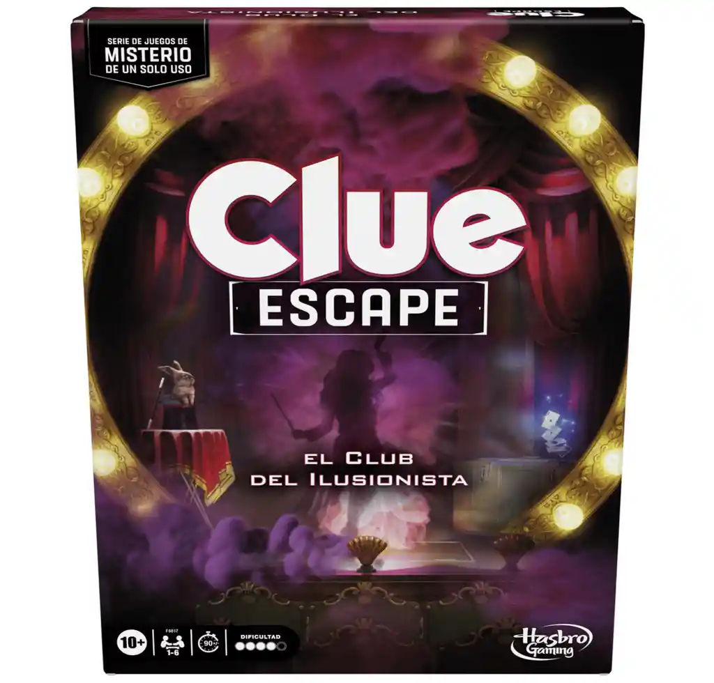 ¡La desaparición de una famosa maga desencadena una carrera por encontrarla! Adelaida Sable estaba haciendo su truco en el que atraviesa un espejo, cuando el teatro se llena de humo y se escuchan unos gritos. ¡Sable ha desaparecido! Ahora los jugadores deben escapar del club de magia y resolver el misterio final del juego Clue Escape: El Club del Ilusionista. Deduzcan QUIÉN la saboteó, DÓNDE está retenida y QUÉ se utilizó para frustrar el truco. Este juego incluye a los personajes clásicos de Clue, ofrece una historia de misterio al estilo Escape de Habitación, y se puede empezar a jugar de inmediato, con poca preparación. Los jugadores mueven los peones por el tablero, que se va armando habitación por habitación a medida que toman tarjetas, resuelven enigmas, abren nuevas habitaciones y descubren pistas. Tras escapar del club, revisan las pistas recolectadas para hacer una acusación correcta y ganar la partida. Reúne a la familia para participar en una fascinante experiencia con este juego que se juega una sola vez. También es un excelente regalo de cumpleaños o fiestas para los fans del juego Clue original y los juegos de misterio y asesinato. EMOCIONANTE JUEGO COOPERATIVO DE UN SOLO USO: En este estratégico juego cinemático de un solo uso, los jugadores unen fuerzas y usan habilidades detectivescas para escapar del club y resolver el misterio de la desaparición de la maga. También se puede jugar solo. RESUELVAN ENIGMAS CON TEMÁTICA DE MAGIA CON LA AYUDA DE UNA HERRAMIENTA SECRETA: Resuelvan enigmas inspirados en los trucos clásicos de magia, así como acertijos para conseguir pistas, algunos de los cuales necesitarán una herramienta «mágica» para ser resueltos EXPLOREN EL CLUB EN UN TABLERO DINÁMICO: Los jugadores exploran el club e intentan realizar un escape que desafía la muerte, en un tablero que cambia y revela nuevas habitaciones a medida que juegan Fabricante: Hasbro Importador: Hasbro Colombia Recomendaciones: Requiere de la supervisión directa de un adulto, puede contener partes pequeñas, riesgo de asfixia o ahogamiento, no destinar este juguete para menores por debajo de la edad establecida en la etiqueta. Edad mínima sugerida: 10 años Lote: Dato variable. Se puede verificar en el sticker que trae el producto físico. Fecha de fabricación: Dato variable. Se puede verificar en el sticker que trae el producto físico.