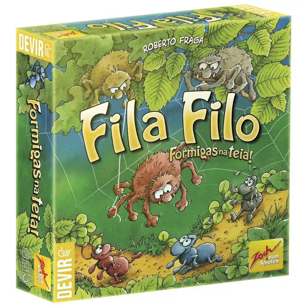 Juego De Mesa Fila Filo - Formigas Na Teia! Calificación BGG: 6.5 Fila Filo (conocido también como Spinderella) es un juego para niños a partir de los 6 años donde cada jugador debe hacer cruzar a sus hormigas por un intrincado camino en un bosque, sin embargo en las copas de los árboles estarán distintas arañas que buscaran tomar a las hormigas y regresarlas al inicio de su camino, el jugador que logre cruzar sus hormigas hasta el final del camino ganará. Una de las mecánicas de juego fundamentales es que los jugadores turno a turno deberán tirar dados para saber que podrán mover (las hormigas, arañas o un tronco que protege a las hormigas) y cuanta cantidad de movimiento tendrán. • Tipo de juego: Competitivo. • Edad: 6 años en adelante. • Número de Jugadores: 2 a 4 jugadores. • Tiempo de Juego: 20 minutos. • Clasificación (1-5): 1.18 • Idioma: español. CONTENIDO DE LA CAJA • Tablero de Recorrido (a doble cara) (de cartón) • Tablero de Telaraña (de cartón) • 4 troncos de soporte (de plástico) • 4 tapones de sujeción (de plástico) • 1 cepa (de plástico) • 12 hormigas (3 en cada color: amarillo, rojo, verde y azul) (de plástico) • 3 dados (de madera) • 2 arañas sin hilo (de plástico) • Araña con hilo y 2 sujeciones (de plástico) • Reglamento PREMIOS Y HONORES • Finalista de Lys Enfant 2016 • Finalista del Juego Infantil del Año JUGuinho 2016 • Ganador del premio al mejor juego infantil Årets Spill 2016 • 2016 Årets Spill Nominado al mejor juego infantil • Ganador del Kinderspiel des Jahres 2015 • Nominado al Kinderspiel des Jahres 2015 • Ganador del premio al mejor juego infantil Deutscher Spiele Preis 2015 • Ganador del concurso "Dětská hra roku" 2015 Recuerda, somos TIENDA MOVITEC.