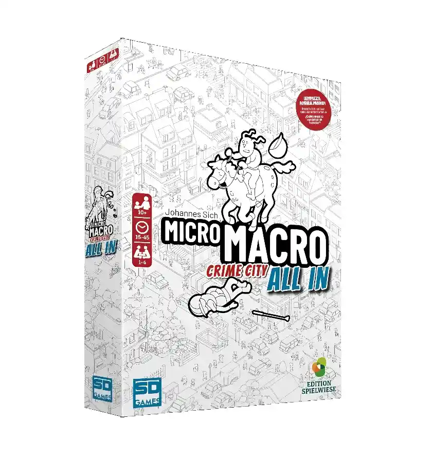Juego de Mesa Micro Macro Crime City All In Calificación BGG: 7.5 MicroMacro: Crime City – All In es como un “¿Dónde está Wally?” criminal, pero convertido en juego de investigación: despliegas un mapa gigante de Ciudad del crimen, caso a caso, vas siguiendo personajes por la ciudad para descubrir qué pasó, quién lo hizo y cómo. Cada carta te da una pista y te obliga a mirar con lupa, conectar escenas y reconstruir la historia paso a paso. Lo mejor es que se juega solo o cooperativo (1–4 jugadores) y cada caso se resuelve en unos 15–45 minutos, así que funciona perfecto para una noche de misterio o para “un caso y ya”… que siempre termina siendo otro caso más. Y como su nombre lo sugiere, All In sube la apuesta con 16 casos nuevos y un sector nuevo de la ciudad para investigar: ideal si tu grupo ama los juegos de deducción, buscar detalles ocultos y sentir el momento “¡AJÁ!” cuando por fin todo encaja. • Tipo de juego: Cooperativo • Edad: 10 años en adelante • Número de Jugadores: 1 a 4 jugadores • Tiempo de Juego: 15 a 45 minutos • Dificultad (1-5): 1.08 • Idioma: Español CONTENIDO DE LA CAJA • 1 mapa de la ciudad • 120 cartas de caso • 16 sobres (para separar los casos) • 1 lupa • 1 reglamento Recuerda, somos TIENDA MOVITEC.