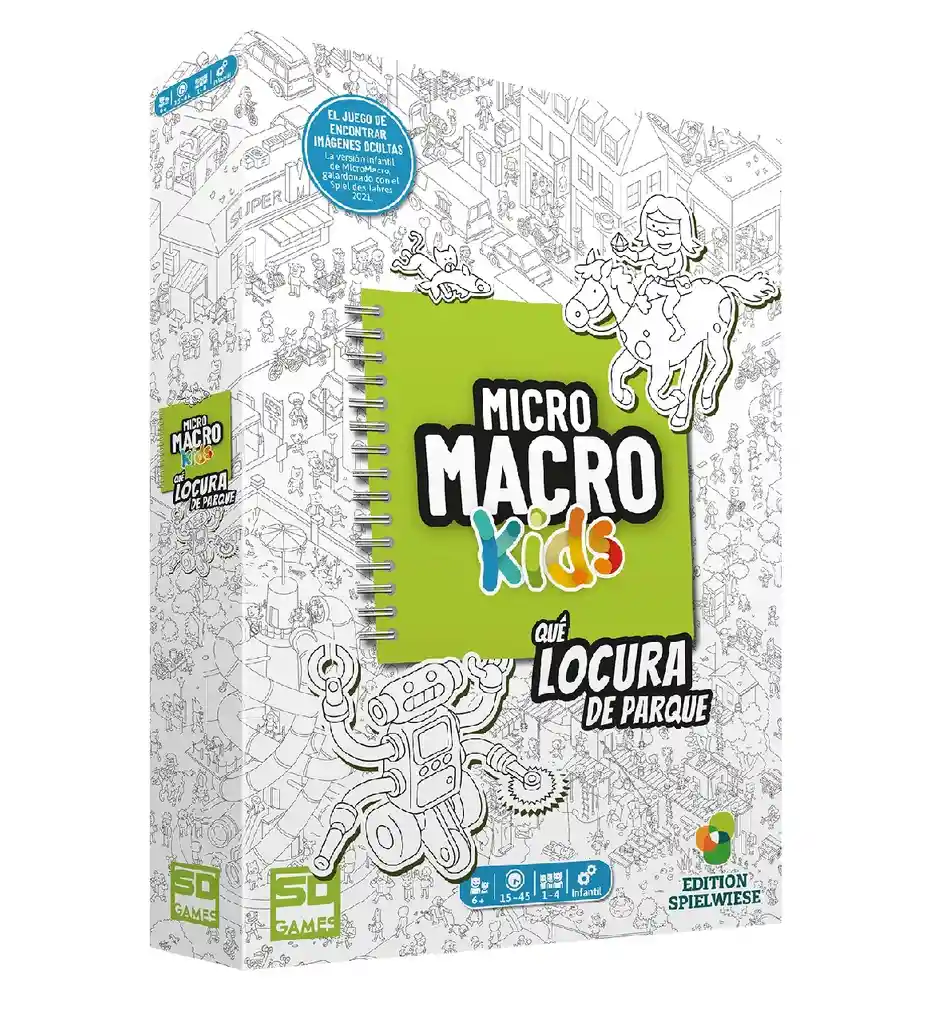 Juego de Mesa Micro Macro Kids Calificación BGG: 7.7 En Micro Macro Kids, tú y tu equipo investigan en un parque lleno de detalles: cosas desaparecidas, situaciones raras y personajes que hay que seguir por el mapa. Es cooperativo, muy visual y perfecto para jugar en familia. ¿Cómo consiguió escapar de la policía el ladrón de diamantes? Para resolver estos casos, tendran que trabajar en equipo. Para eso tendréis que seguir pistas, resolver acertijos y perseguir a los sospechosos. ¡Como lo harían unos auténticos detectives! • Tipo de juego: Cooperativo • Edad: 6 años en adelante • Número de Jugadores: 1 a 4 jugadores • Tiempo de Juego: 15 a 45 minutos • Dificultad (1-5): 1.00 • Idioma: Español CONTENIDO DE LA CAJA • Un enorme mapa de la ciudad • Un libro de los investigadores • 1 libro de reglas • 20 fichas de detective Recuerda, somos TIENDA MOVITEC.