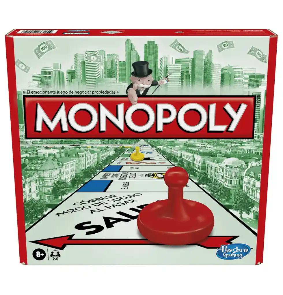 Nombre: Monopoly Modular Referencia: 16901 Monopoly es el juego de mesa de bienes raíces; más vendido del mundo. El objetivo del juego es hacer un monopolio de oferta; poseyendo todas las propiedades inmuebles que aparecen en el juego. Los jugadores mueven sus respectivas fichas por turnos en sentido horario alrededor de un tablero; basándose en la puntuación de los dados; cae en propiedades que puedes comprar de un banco imaginario; o dejar que el banco las subaste en caso de no ser compradas. Si las propiedades en las que caen ya tienen dueños; los propietarios pueden cobrar por pasar por su propiedad o venderlas. (Las imágenes son de referencia.) Incluye: - Tablero - 6 peones - 28 tarjetas de titulo de propiedad - 16 tarjetas de fortuna - 16 tarjetas de arca comunal - 32 casas - 12 hoteles - 2 dados - paquete de dinero e instructivo. Fabricante: Hasbro Importador: Hasbro Colombia Recomendaciones: Requiere de la supervisión directa de un adulto, puede contener partes pequeñas, riesgo de asfixia o ahogamiento, no destinar este juguete para menores por debajo de la edad establecida en la etiqueta Edad mínima sugerida: 8 años Lote: Dato variable. Se puede verificar en el sticker que trae el producto físico. Fecha de fabricación: Dato variable. Se puede verificar en el sticker que trae el producto físico.