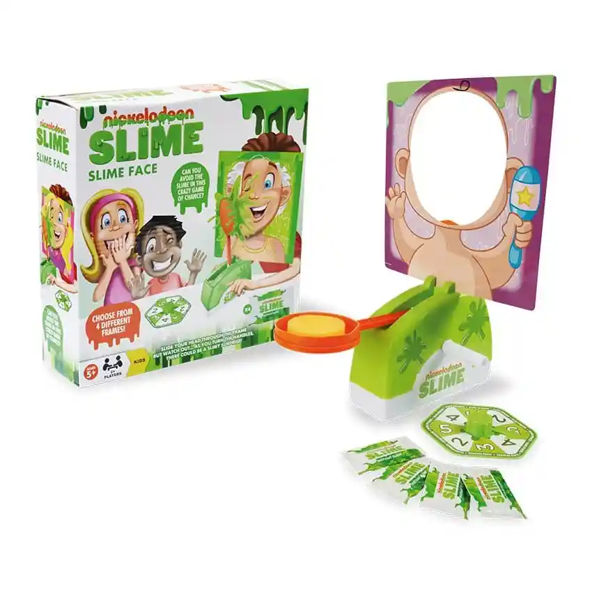 Juego de Mesa Nickelodeon Slime Face Incluye: - 1 base lanzadora de slime - 2 marcos reversibles - 4 empaques de slime - 1 ruleta Marca: Ronda Edad mínima recomendada: 5+ Cantidad de jugadores: 2 o más ¿Cómo se juega? Coloca tu rostro en el marco, gira la ruleta y ajusta las manijas según indique… pero ¡cuidado! En cualquier momento el slime puede salir disparado y sorprenderte. Beneficios: - Estimula la concentración, la memoria y la observación - Favorece el desarrollo de habilidades motoras y sensoriales - Promueve la interacción social, la imaginación y el juego en equipo Ideal para reuniones familiares, tardes de juego y como regalo para niños y niñas. ¡Diversión asegurada con el inconfundible estilo Nickelodeon!