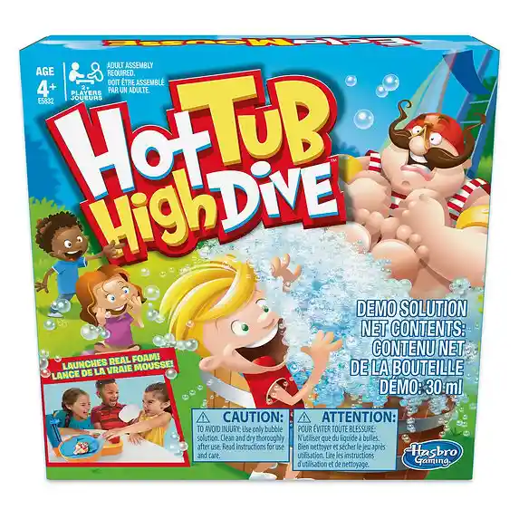 Empaque de regalo sin costo adicional, escríbenos al finalizar la compra. 4 Años+ ¡Cuidado con la espuma voladora! Los jugadores presionan el botón para enviar al buzo arriba o abajo de la escalera, y cada pulsación del botón aumenta la cantidad de espuma en la bañera. Pero ten cuidado. Una vez que el buzo llegue a la cima, caerá en la bañera, lanzando una bola de espuma a un jugador desafortunado. Si eso sucede en tu turno, ¡estás fuera! El jugador que logre que el buzo no caiga y la espuma vuele gana.