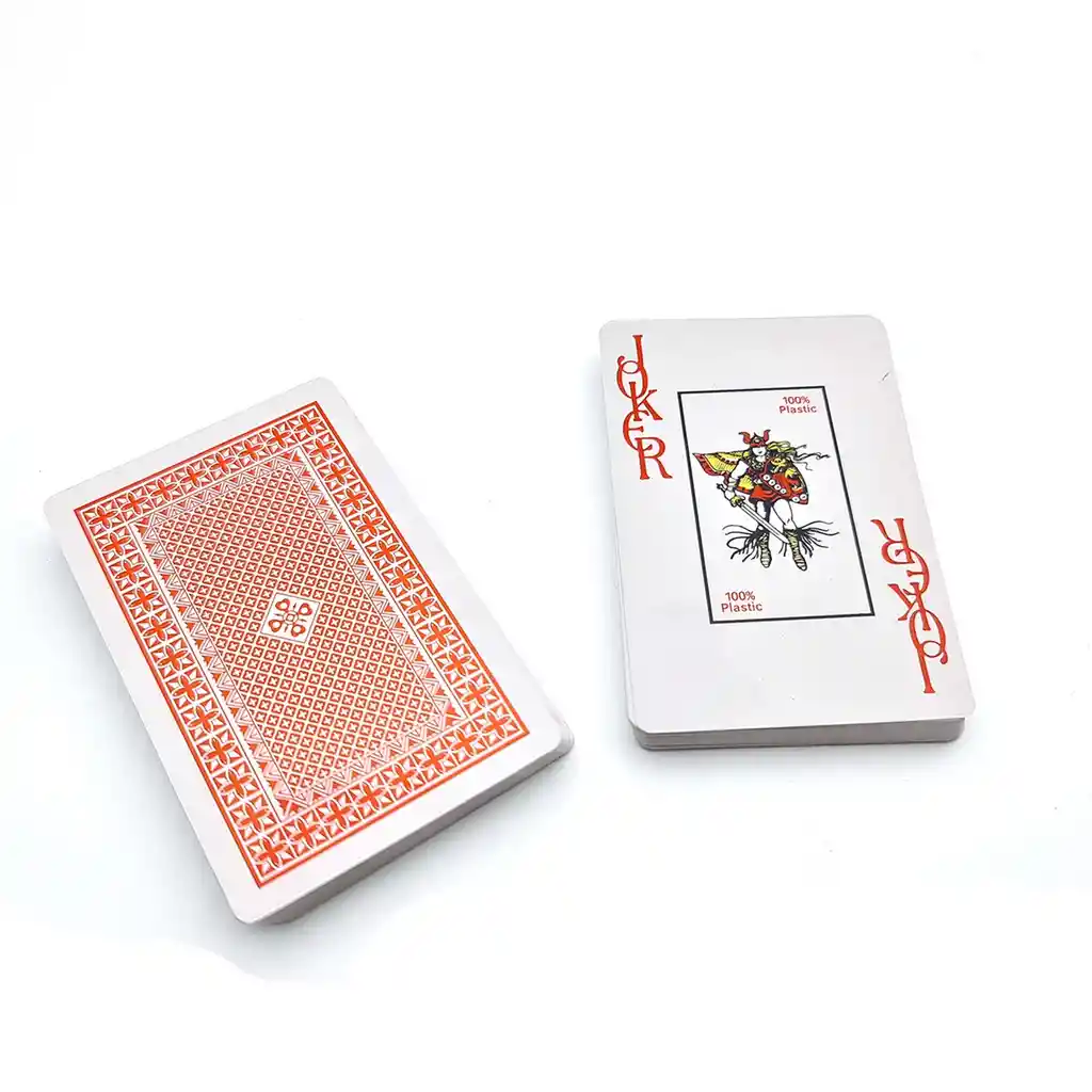 Llévate estas dos espectaculares barajas de póquer, desafía a tus amigos, apuesta y gana, gran calidad y durabilidad, 100% plastificadas. El póquer es un juego de apuestas en que los jugadores, con todas o parte de sus cartas ocultas, hacen apuestas sobre una puja inicial, recayendo la suma total de las apuestas en el jugador o jugadores con la mejor combinación de cartas. Hay muchas variantes de póker, entre las que cabe señalar el póquer abierto, póquer cerrado, póquer de cartas compartidas y póquer surtido. Ficha Técnica: Material: Plástico Número Barajas: 2 Numero Cartas: 104 Longitud Cartas: 9.5 Ancho Cartas: 6.2 cm La garantía en cuanto al póquer corresponde a una vez recibido el producto este se encuentre en buenas condiciones.