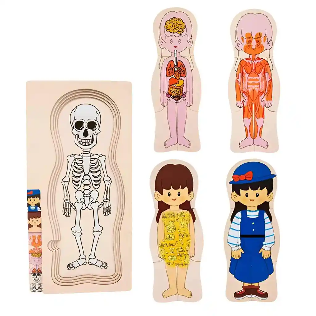 Embárcate en un fascinante viaje al interior del cuerpo humano con nuestro innovador rompecabezas de madera multicapa. Diseñado para mentes curiosas, este juguete educativo permite a los niños explorar la anatomía de una manera única y tangible, construyendo el cuerpo humano capa por capa, desde el esqueleto fundamental, pasando por los órganos vitales, la musculatura y la piel, hasta vestir finalmente al personaje. Fabricado en madera de alta calidad, este rompecabezas no solo desarrolla la motricidad fina y la resolución de problemas, sino que también satisface la curiosidad natural de los niños sobre sí mismos, convirtiendo el aprendizaje de la biología en una aventura de montaje inolvidable. Ficha Técnica: Material: Madera Dimensiones : 30 cm x 14.5 cm x 1.5 cm Apto para bebes + 3 Años Certificado de conformidad: E5-0359-2021 Referencia: DM1272 ** _Para defectos de fábrica o retractos: \_Por favor revise el producto apenas lo reciba y antes de usarlo. No aplican ley de retracto o defectos de fábrica luego de usar el producto. Se manejan máximo 5 días para reportar defectos de fábrica (por ejemplo, producto funciona mal, piezas faltantes, rotas, etc). Para hacer efectiva la devolución el producto debe devolverse con el empaque original, el cual debe estar en buen estado, incluir todos los documentos y las partes completas y sin daños.