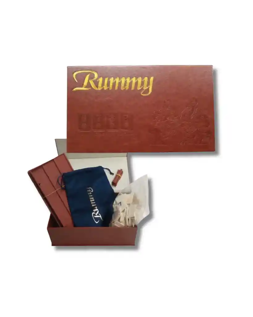 Clásico juego de fichas tipo Rummy, ideal para reuniones familiares o con amigos. Viene en elegante caja color marrón que facilita su almacenamiento y transporte. Características principales: Contenido: fichas numeradas, atriles/soportes y manual de instrucciones. Material: fichas de resina/plástico resistente. Jugadores: 2 a 4 personas.