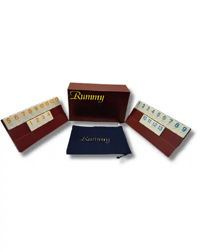 Clásico juego de fichas tipo Rummy, ideal para reuniones familiares o con amigos. Viene en elegante caja color marrón que facilita su almacenamiento y transporte. Características principales: Contenido: fichas numeradas, atriles/soportes y manual de instrucciones. Material: fichas de resina/plástico resistente. Jugadores: 2 a 4 personas. Edad recomendada: +8 años. Presentación: caja de lujo, perfecta para regalo.