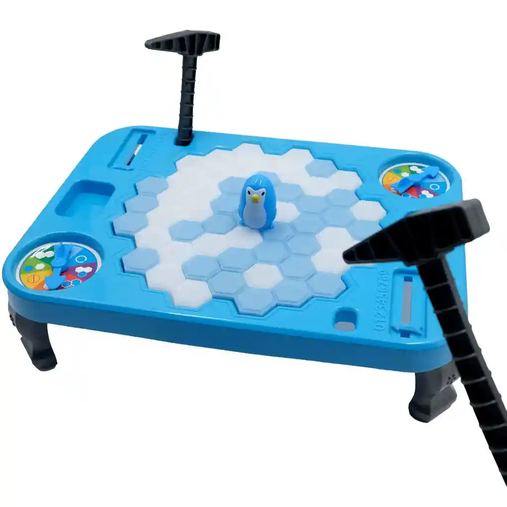 juego de mesa interactivo para niños a partir de 3 años, diseñado para fomentar la coordinación, la toma de decisiones y la interacción familiar. Consiste en un tablero con bloques de hielo hexagonales que los jugadores deben ir retirando cuidadosamente con martillos plásticos, evitando que el pingüino (o dinosaurio, según la versión) caiga al vacío. Edad recomendada: 3 años en adelante Tipo de juego: Juego de mesa interactivo de destreza Contenido del set: 1 tablero base desmontable 38 – 40 bloques hexagonales tipo “hielo” (en colores azul y blanco) 2 martillos plásticos de tamaño infantil 1 figura de pingüino/dinosaurio Instrucciones de juego Material: Plástico ABS de alta resistencia, no tóxico Colores predominantes: Azul, blanco y negro Presentación: Caja ilustrada Características Tablero con bloques hexagonales desmontables y fáciles de armar. Martillos de tamaño infantil adaptados para manos pequeñas. Piezas seguras, sin bordes filosos. Juego reutilizable: los bloques se pueden volver a colocar tras cada partida. Dinámica simple y divertida para toda la familia.