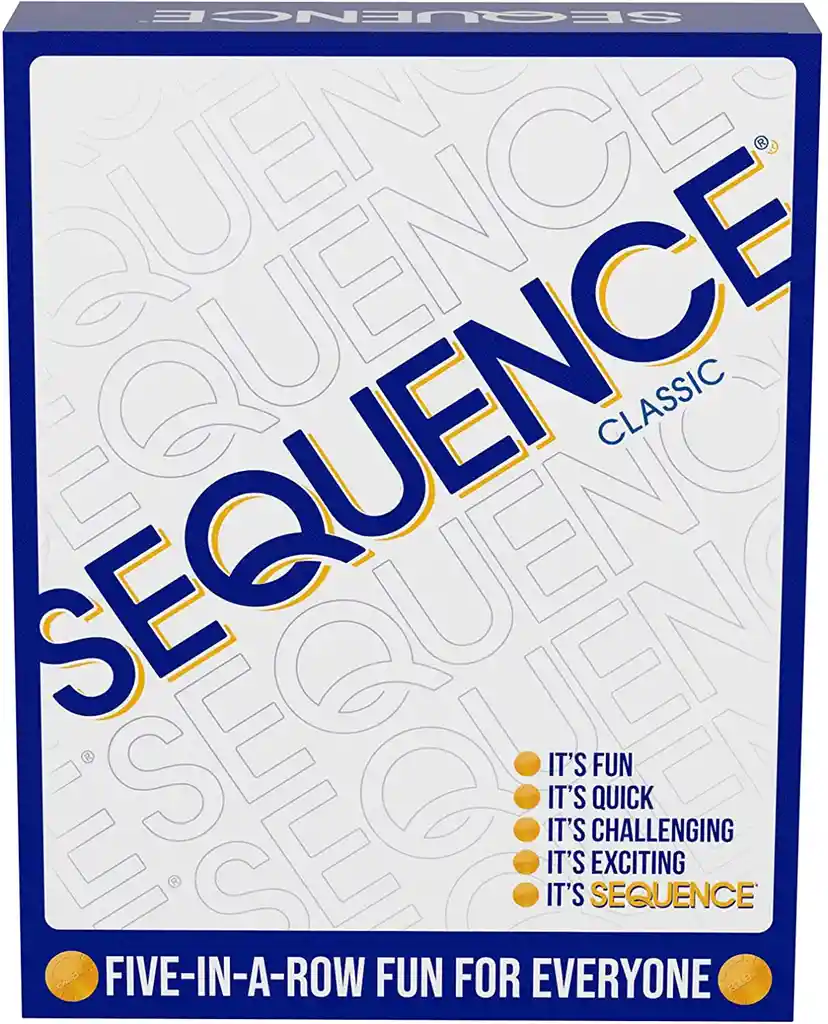 Empaque de regalo sin costo adicional, escríbenos al finalizar la compra. 7 años + Es divertido, es desafiante, es emocionante, es secuencia! Juega una carta de tu mano y coloca un chip en un espacio correspondiente en el tablero de juego. Cuando tienes cinco en una fila, es una secuencia. Aprende a bloquear a tus oponentes o eliminar sus fichas, y ten cuidado con los Jacks - ¡Son salvajes! Con un poco de estrategia y suerte, serás un ganador. Contenido: 1 tablero de juego plegable, 2 barajas de secuencia, 135 fichas de juego, instrucciones completas
