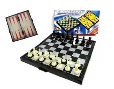 Medida tablero: 19,5 cm x 19,5 cm• Juego de Mesa 3 en 1• AJEDREZ: El ajedrez es un juego entre dos contrincantes, cada uno dispone de 16 piezas móviles que se colocan sobre un tablero dividido en 64 casillas o escaques. En su versión de competición, está considerado como un deporte aunque en la actualidad tiene claramente una dimensión social, educativa y terapéutica también.• JUEGO DE DAMAS: Las damas es un juego de mesa para dos contrincantes. El juego consiste en mover las piezas en diagonal a través de los cuadros negros de un tablero de 64 o 100 cuadros, si alguien no mata se le será soplado al jugar contrario intención de capturar piezas del jugador contrario, pasando por encima de dichas piezas.• BACKGAMMON: Juego de mesa para dos jugadores, que une el azar con profundos conocimientos estratégicos. El objetivo es conseguir sacar fichas del tablero antes que el jugador rival.