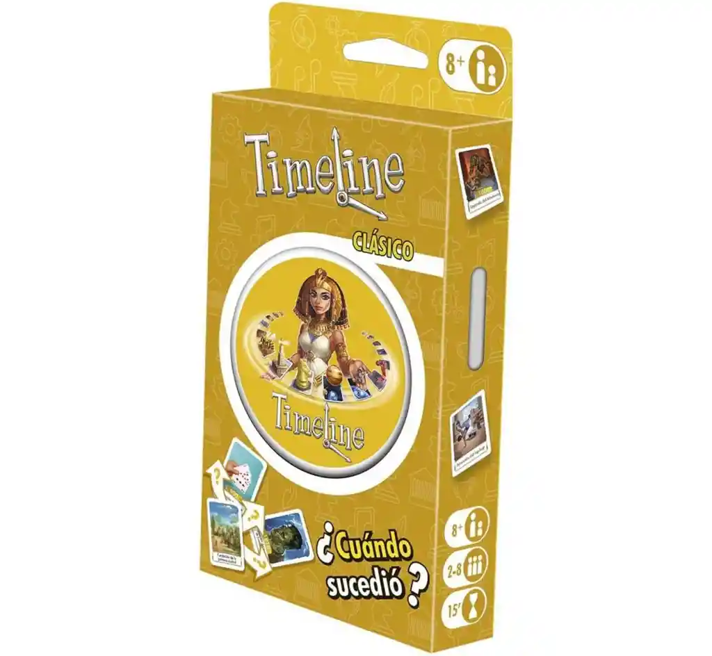 Empaque de regalo sin costo adicional, escríbenos al finalizar la compra. 8 años+ Timeline: Clásico es un fascinante juego de mesa que pondrá a prueba tus conocimientos históricos. ¿Sabes cuándo se formuló la teoría de la evolución de Darwin? ¿Podría alguien estar brindando con champán en ese momento? Descúbrelo mientras compites contra tus amigos y familiares para ser el primero en colocar correctamente todas tus cartas. En este juego, se te desafiará a ordenar eventos históricos en una línea de tiempo. Tendrás que utilizar tu intuición y conocimientos para determinar la posición correcta de cada acontecimiento. Desde descubrimientos científicos hasta avances culturales y hitos históricos, cada carta representa un evento importante. Para hacer el juego aún más emocionante y desafiante, tienes la opción de combinar las cartas de Timeline: Clásico con las de otros juegos de la serie Timeline. Esto ampliará la variedad de eventos y te permitirá crear combinaciones únicas. ¡La diversión está garantizada mientras te enfrentas a tus oponentes y pones a prueba tus habilidades históricas! Contenido del juego 55 cartas, 1 caja de latón y 1 reglamento Tamaño: 15 x 9 x 3cm