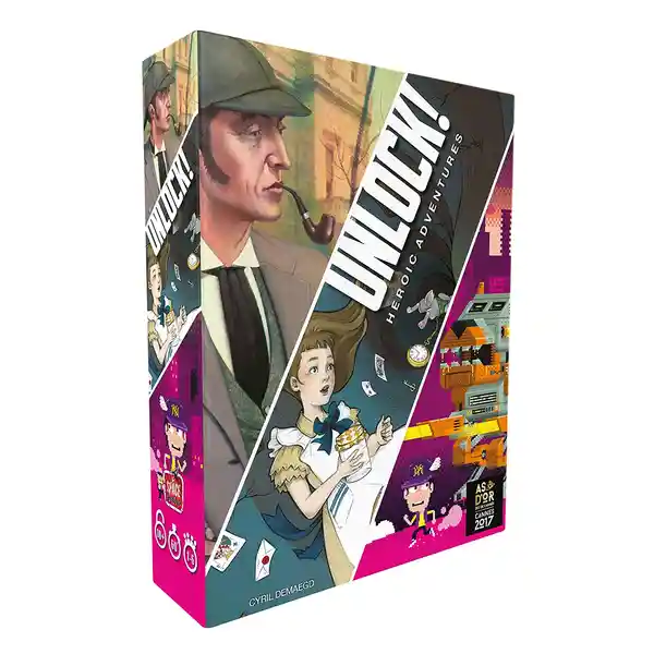 Unlock! es un juego de cartas cooperativo inspirado en un Escape Room. Los Escape Room son salas de las que tienes que escapar en menos de 60 minutos. Unlock. Te permite vivir esta experiencia en tu casa, alrededor de una mesa. Tres aventuras que te engancharán. Insert Coin: Hay que superar todos los niveles de esta aventura virtual. Escapad o será el fin de la partida. Sherlock Holmes - La roja Hebra Criminal: El mejor de los detectives tiene un caso muy peculiar ante él. Podéis ayudarle a llevar a buen término esta investigación? Tras los pasos del Conejo Blanco: Descubrid la tierra de las maravillas y todos sus extraños habitantes. De prisa, a Alicia se le agota el tiempo. Busca en los escenarios. Combina objetos. Resuelve puzles. Edad a partir de 8 años. Duracion =60 mn Tamaño= 28 x 22 x 7 Cms.