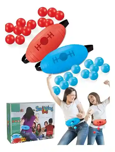 El Juego Bola de Balanceo es un juego interactivo y dinámico que convierte cualquier reunión en una experiencia llena de risas y movimiento. Cada jugador lleva un cinturón con un recipiente lleno de pelotas y debe moverse (saltar, bailar o agitarse) hasta vaciarlo por completo en el menor tiempo posible. ¡Perfecto para fiestas, reuniones familiares o juegos recreativos! 🔹 Características Juego de movimiento corporal que fomenta la actividad física. Competencia entre 2 jugadores o equipos. Cinturones ajustables para diferentes tallas. Pelotas de colores para distinguir equipos. Dinámica simple, rápida y muy divertida. 🔹 Beneficios Estimula la coordinación y la motricidad gruesa. Promueve la diversión en grupo y la integración. Refuerza la competencia sana y el espíritu deportivo. Ideal para interiores o exteriores. Apto para niños desde 8 años y adultos. 🔹 Contenido del set 2 recipientes esféricos (1 rojo y 1 azul). 24 pelotas plásticas (12 rojas y 12 azules). 2 cinturones ajustables con velcro. Instrucciones de juego. 🔹 Modo de uso Ajusta el cinturón a la cintura de cada jugador. Coloca las pelotas en el recipiente trasero. A la señal, los jugadores deben moverse para vaciarlo. Gana quien logre sacar primero todas sus pelotas. Repite en rondas o en equipos para mayor diversión.