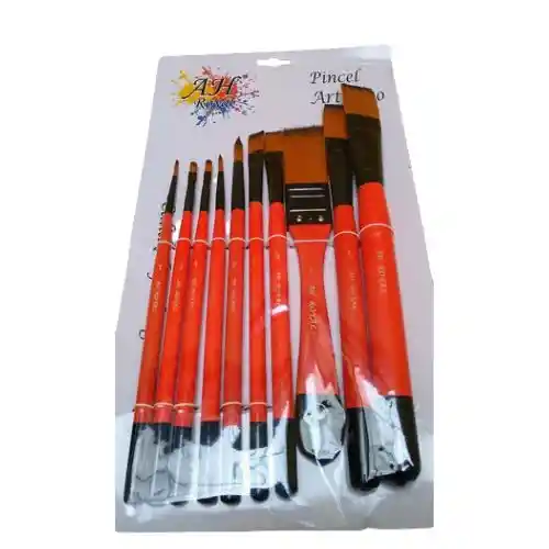 ¿Que Es El Juego De Pinceles AH Royal? juego de pinceles x10 AH Royal son de hilos fuertes que no se dañan fácilmente ni se desgastan, estos pinceles tienen un pintado suave y uniforme. Los pinceles vienen en una presentación por 10 pinceles distintos. ¿Características Del Juego De Pinceles X10? Son pinceles con variedad de cualidades, tiene de los que generalmente más utilizan en las pinturas. Son de hilos suaves, con tamaños delgados y anchos para hacer trazos de diferentes formas y texturas. Pinceles que trae el juego AH Royal: Pincel plano ½ – ⅛ – ¾ – 1’’ : pinta de manera uniforme y deja capa gruesa de pintura. Pincel angular 2 – 4 : Pintado para hacer trazos de distintos tamaño con el mismo pincel. Redondo 6 : Pincel muy útil para pintar variadas figuras con trazos diferentes. Pinceletas: 1 – 4 : Pinceles con cepillo pequeño, y final en punta. Brocha 1’’ plano: Un pincel en forma de brocha con cabo plano para mantener más control sobre el trazo y pintar con mayor rapidez.