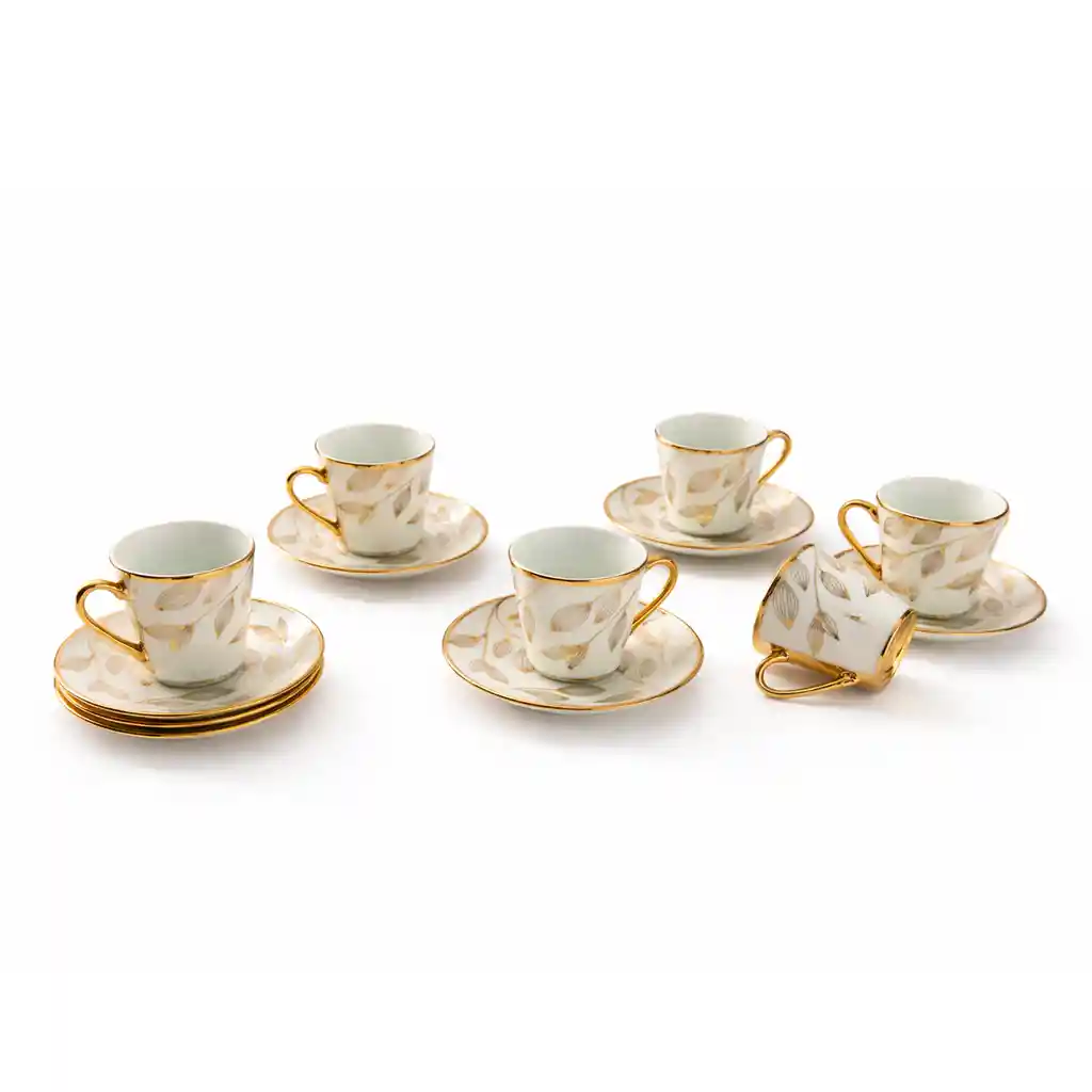 Set completo para 6 puestos incluye 12 piezas: . 6 platos de 10,5cm . 6 Pocillos de 90ml (3oz) . Elaborado en cerámica resistente. Diseño elegante blanco con filo dorado. Ideal para café espresso o tinto. Acabado brillante y sofisticado. Perfecto para hogar y oficinas. Aporta estilo a tu mesa. Fácil de limpiar y mantener. Excelente opción para regalos. Material durable y de calidad. Diseño moderno y decorativo. La imagen ha sido ambientada; no incluye accesorios adicionales y el color puede variar según la iluminación.
