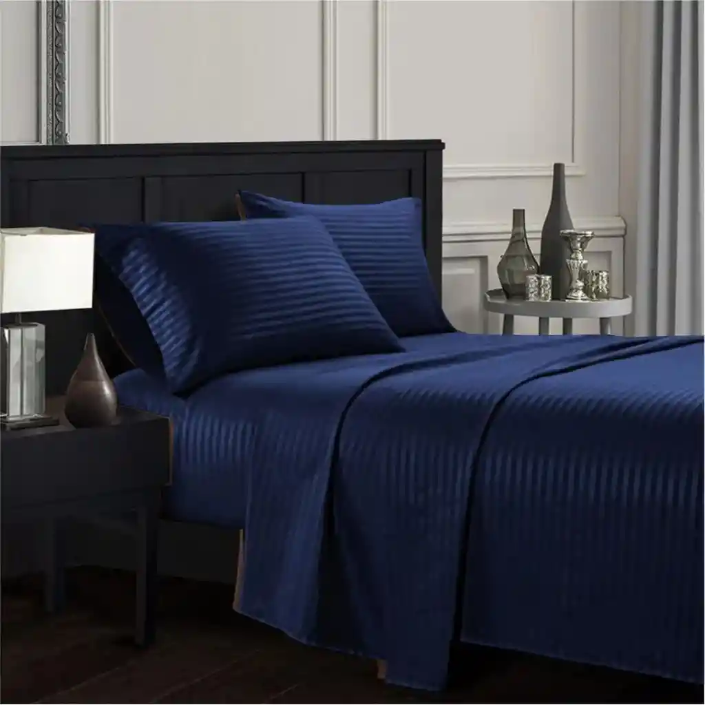 Juego de sábana doble, 160 hilos azul navy, 4 piezas (sábana, sobre sábana, dos fundas) Medida: 140 x 190 cm 2 fundas: 50x70 cm Caja: 25 cm (si tu colchón es más alto recomendamos comprar la siguiente medida) 100% Suavidad Planchado permanente No produce motas Elástico envolvente