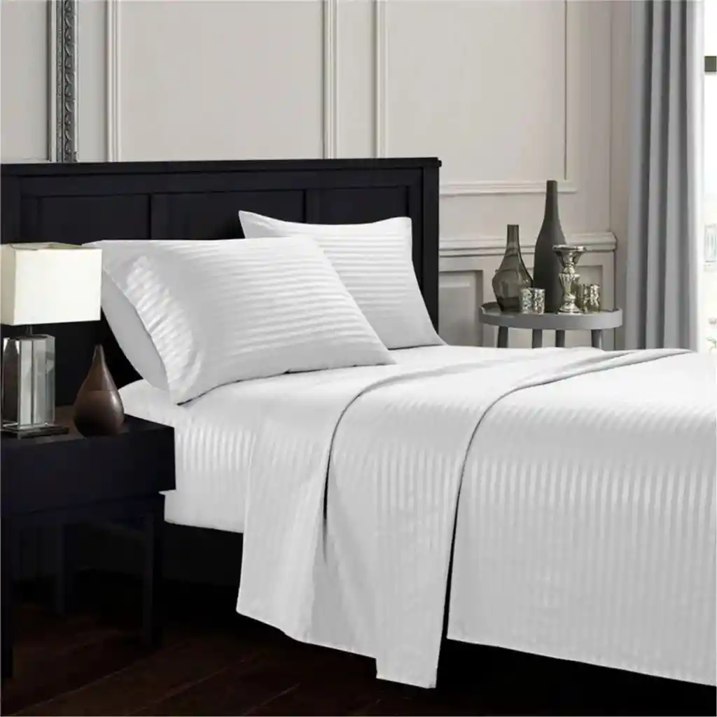 Juego de sábana doble, 160 hilos blanca, 4 piezas (sábana, sobre sábana, dos fundas) Medida: 140 x 190 cm 2 fundas: 50x70 cm Caja: 25 cm (si tu colchón es más alto recomendamos comprar la siguiente medida) 100% Suavidad Planchado permanente No produce motas Elástico envolvente