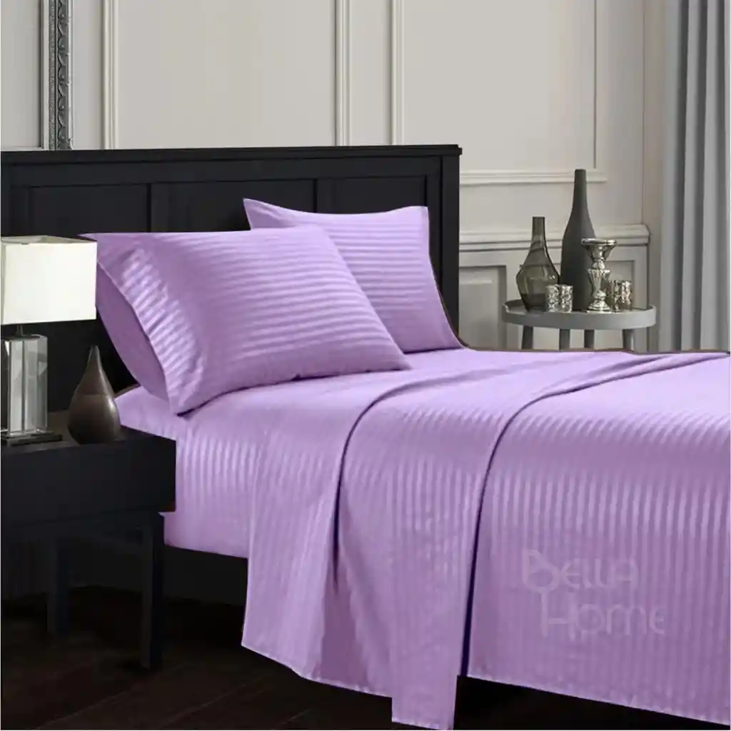 Juego de sábana extra doble (queen), 160 hilos Lila o Morado, 4 piezas (sábana, sobre sábana, dos fundas) Medida: 160 x 190 cm 2 funda: 50x70 cm Caja: 25 cm (si tu colchón es más alto recomendamos comprar la siguiente medida) 100% Suavidad Planchado permanente No produce motas Elástico envolvente