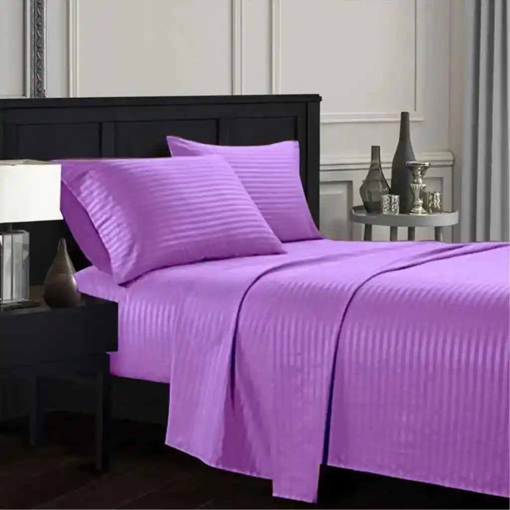 Juego de sábana extra doble (queen) de alta calidad, 180 hilos Lila o Morado, 4 piezas (sábana, sobre sábana, dos fundas) Medida: 160 x 190 cm 2 funda: 50x70 cm Caja: 25 cm (si tu colchón es más alto recomendamos comprar la siguiente medida) 100% Suavidad Planchado permanente No produce motas Elástico envolvente