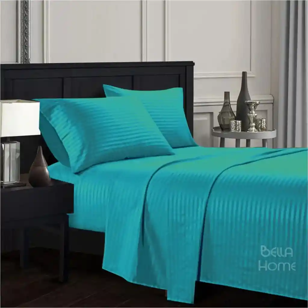 Juego de sábana extra doble (queen), 160 hilos turquesa, 4 piezas (sábana, sobre sábana, dos fundas) Medida: 160 x 190 cm 2 funda: 50x70 cm Caja: 25 cm (si tu colchón es más alto recomendamos comprar la siguiente medida) 100% Suavidad Planchado permanente No produce motas Elástico envolvente