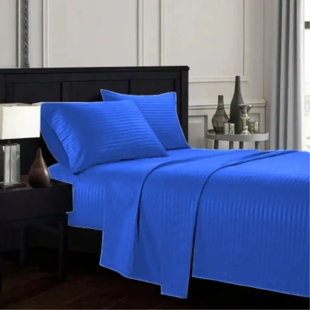 Juego de sábana King de alta calidad, 180 hilos azul rey unicolor, 4 piezas (sábana, sobre sábana, dos fundas) Medida: 200 x 200 cm 2 fundas: 50x70 cm Caja: 25 cm 100% Suavidad Planchado permanente No produce motas Elástico envolvente