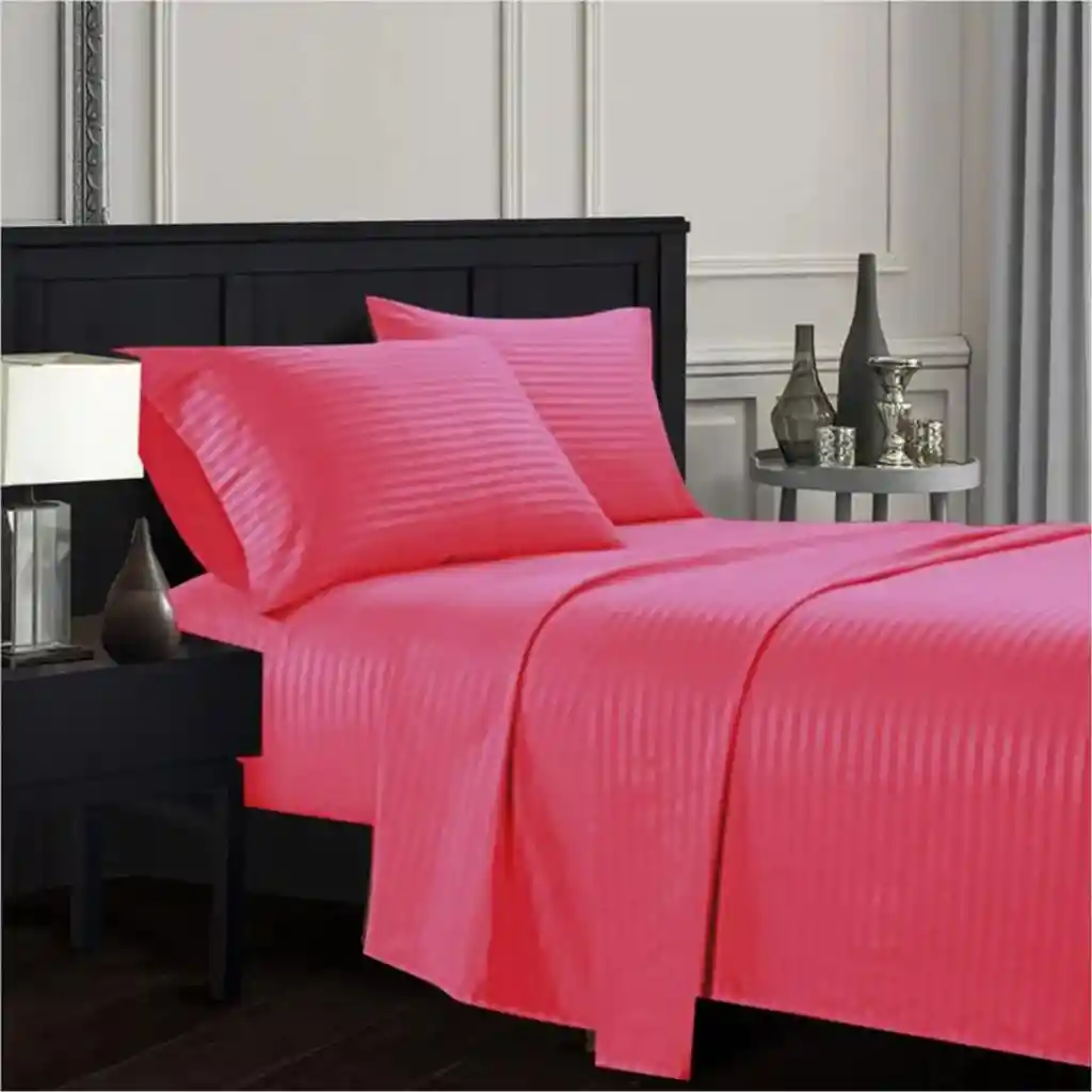 Juego de sábana King, 160 hilos coral unicolor, 4 piezas (sábana, sobre sábana, dos fundas) Medida: 200 x 200 cm 2 fundas: 50x70 cm Caja: 25 cm 100% Suavidad Planchado permanente No produce motas Elástico envolvente