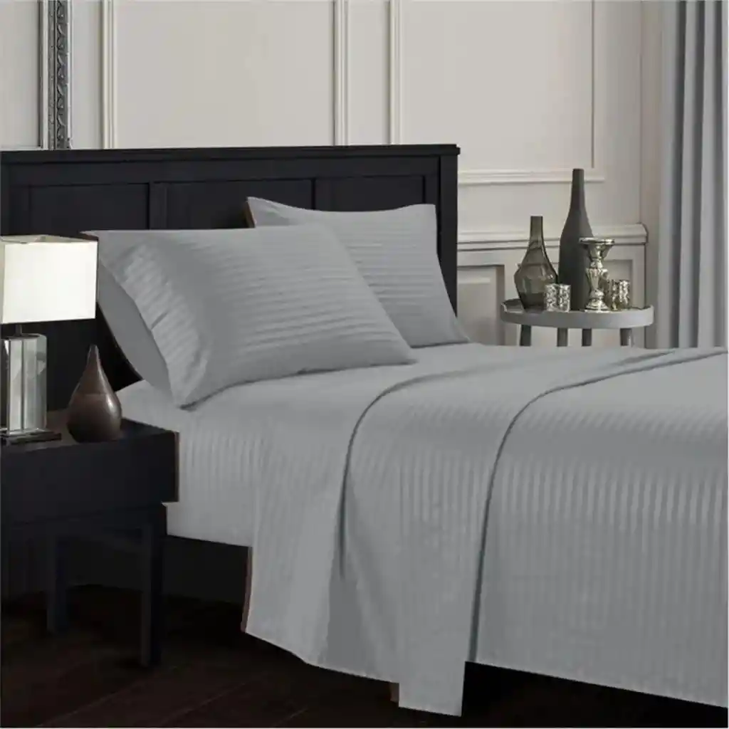 Juego de sábana King de alta calidad, 400 hilos gris unicolor, 4 piezas (sábana, sobre sábana, dos fundas) Medida: 200 x 200 cm 2 fundas: 50x70 cm Caja: 25 cm 100% Suavidad Planchado permanente No produce motas Elástico envolvente