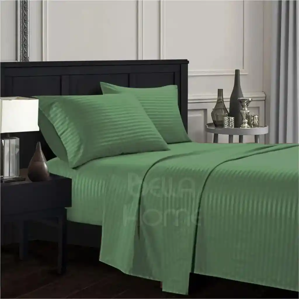 Juego de sábana King, 160 hilos verde militar unicolor, 4 piezas (sábana, sobre sábana, dos fundas) Medida: 200 x 200 cm 2 fundas: 50x70 cm Caja: 25 cm 100% Suavidad Planchado permanente No produce motas Elástico envolvente