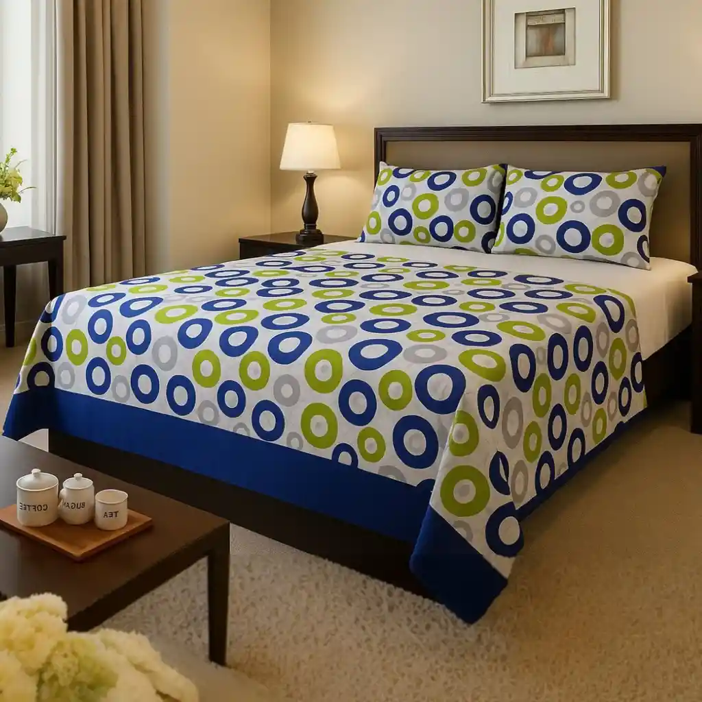 Convierte tu habitación en un espacio lleno de vida, frescura y alegría con este hermoso juego de sábanas en microfibra, diseñado especialmente para quienes buscan confort, suavidad y un estilo único que enamora a primera vista. Diseño encantador y vibrante El estampado en colores vivos llena tu cama de energía positiva y diversión. Cada detalle está pensado para transmitir ligereza y vitalidad, creando un ambiente acogedor y moderno que alegra tus días y noches. Incluye todo lo que necesitas Este juego completo está compuesto por: 1 sábana ajustable con elástico en todo el contorno, que se adapta perfectamente a tu colchón y lo mantiene protegido. Medidas: 1.40 x 1.90 x 28 cm. 1 sobre sábana ligera, fresca y de caída suave para un descanso placentero. Medidas. 1.96 x 2.18 cm. 2 fundas para almohadas con el mismo diseño alegre de circulos, para que tu cama luzca siempre coordinada y espectacular. Medidas: 70 x 50 cm. Comodidad que se siente Fabricado en microfibra premium de alta calidad, un material reconocido por su suavidad sedosa, resistencia y durabilidad. No se arruga fácilmente, no forma motas y conserva los colores brillantes lavado tras lavado. Además, es ideal para climas cálidos y fríos gracias a su frescura y capacidad de mantener la temperatura agradable. Beneficios principales: - Tela hipoalergénica y amigable con la piel. - Fácil de lavar y de secado rápido. - Colores intensos que no se desvanecen. - Ajuste perfecto al colchón sin deslizarse. - Diseño alegre y versátil que combina en cualquier habitación. Perfecto para regalar Este juego de sábanas no solo es ideal para tu hogar, sino también una excelente opción para sorprender a familiares y amigos. Un regalo útil, hermoso y lleno de estilo. Duerme rodeado de color, estilo y comodidad con este Juego de Sábanas en Microfibra de colores. ¡Tu habitación nunca se verá igual!